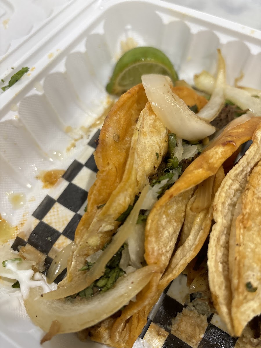 I ordered 2 chicken birria’s. Absolutely delicious, made fresh and authentic with love. Real Mexican food in Mississauga. The meat was tender and the topping’s were very fresh. A squeeze of lime and sauce to add that kick, such a delicious meal. I also ordered the churros as my dessert, very delicious with the caramel sauce. Anna’s customer service was amazing. I will definitely be back again.