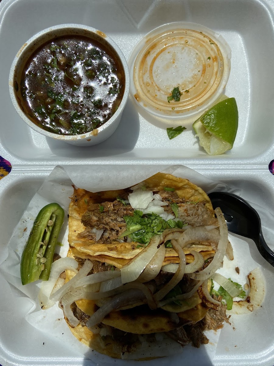 Great little spot with a real mom & pop feel. Top notch tacos with generous portions. I was a little put off by pricing when I first looked at the menu, but when the food came I can say that the pricing to quantity ratio is fair. We also ordered the Horchata, Churros, Side Rice, and Chips with queso. The consume for the birria tacos was so good that I had to order another side of it just so I can sip it like a soup. I can honestly say this was the best customer service I've received in recent memory by whom I assume was the owner. She was a very nice lady who took the time to speak with me and my wife and told me about the freshness and care of the preparation of their product. Authenticity and quality is apparent in their dishes. We live about 1/2 an hour away but we will definitely be back. Thank you for a great experience